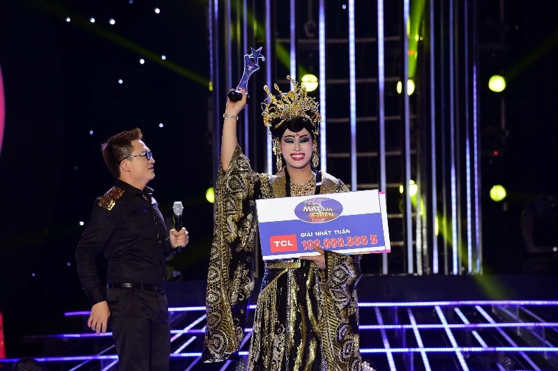 Anh chia sẻ rằng anh may mắn khi mời được nghệ sĩ Tú Sương và nghệ sĩ Trung Thảo cùng luyện tập cho mình trong tiết mục này. Tiết mục hóa thân thành công này đã giúp Phan Ngọc Luân giành giải nhất tuần với 35 điểm. Ảnh: Lý Võ Phú Hưng - Sóng Vàng