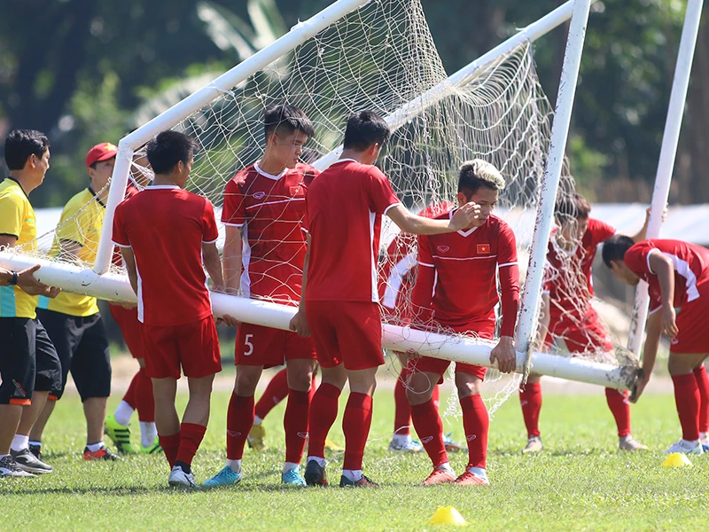 | Tuyển Việt Nam tập không ngơi nghỉ Ngày 21-11, trừ nhóm cầu thủ đá chính ở trận Myanmar tập hồi phục tại khách sạn, HLV Park Hang-seo đưa các cầu thủ còn lại ra sân phụ Thuwunna ráo riết tập luyện. Bất chấp cái nắng nóng gay gắt gần giờ trưa, ông Park và các trợ lý luôn yêu cầu tuyển thủ Việt Nam nỗ lực hết mình trên sân tập. Ông Park chia sẻ lúc này cầu thủ cần phục hồi sức khỏe lẫn tinh thần và tập trung cao độ cho cuộc đón tiếp Campuchia với mục tiêu ghi thật nhiều bàn thắng để vượt trội chỉ số phụ mà lấy ngôi nhất bảng A. |