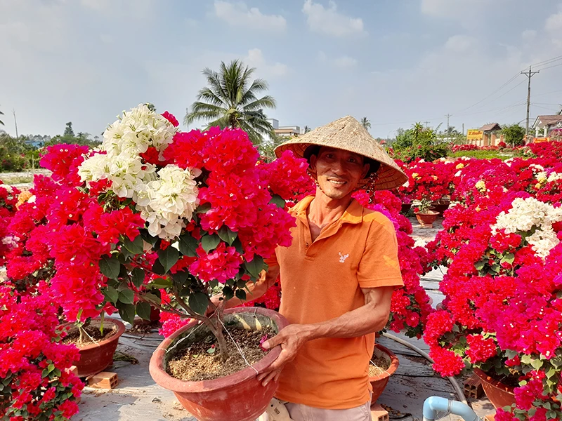 Ông Phan Thế Dũng trồng 5.000 chậu hoa giấy phấn khởi nói: “Năm nay thời tiết thuận lợi, hoa giấy trúng bông lại bán được giá từ 200.000 đến 500.000 đồng mỗi chậu. Lo ảnh hưởng của dịch bệnh nên tôi tranh thủ bán cho thương lái hết hàng trước ngày 20 tết âm lịch”.