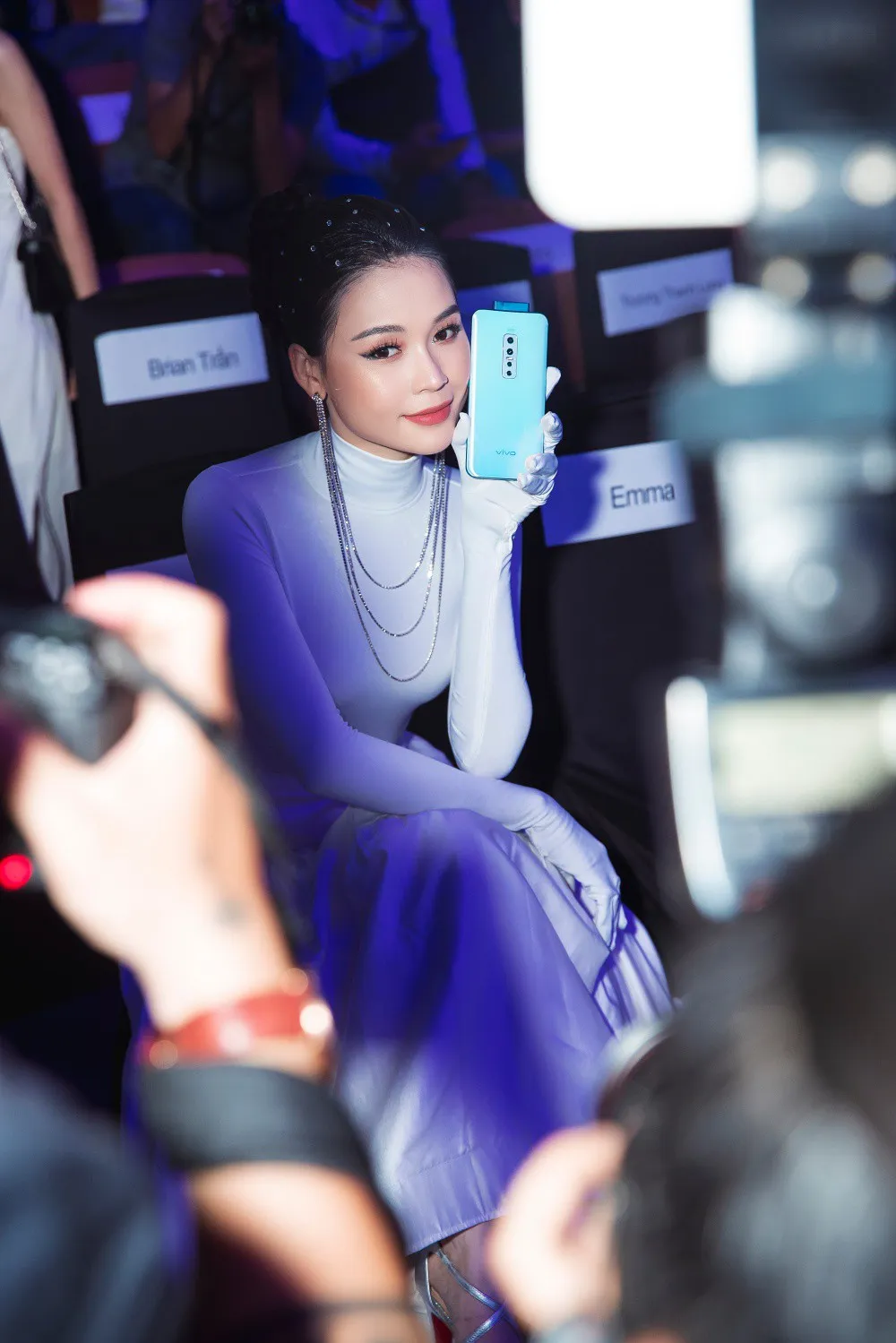 Sở hữu thân hình cân đối nên Sam luôn tự tin diện những trang phục tôn vóc dáng, như bộ trang phục trắng ôm sát cùng những phụ kiện lấp lánh.