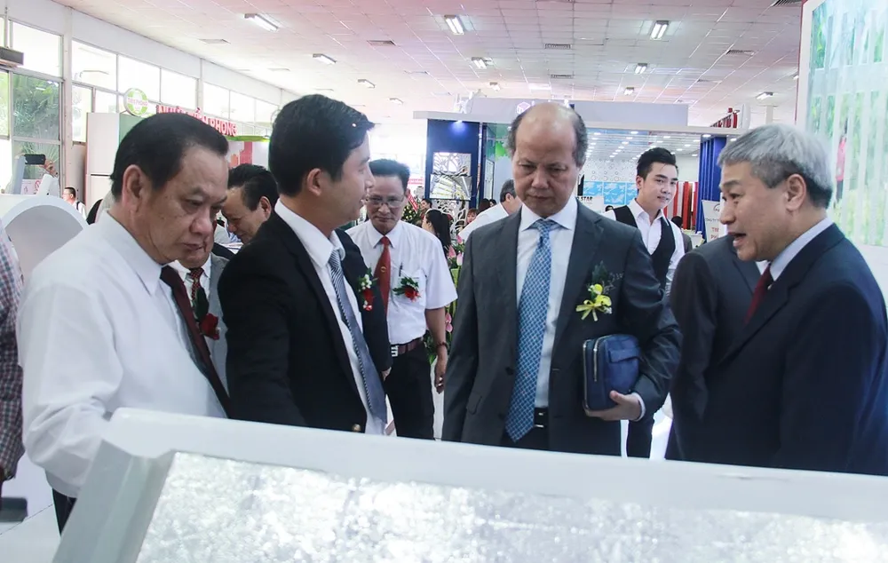 Ông Nguyễn Trần Nam, nguyên Thứ trưởng Bộ Xây dựng, Chủ tịch Hiệp hội Bất động sản Việt Nam tham quan gian hàng Hoa Sen tại Vietbuild Cần Thơ 2017.
