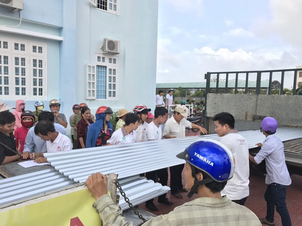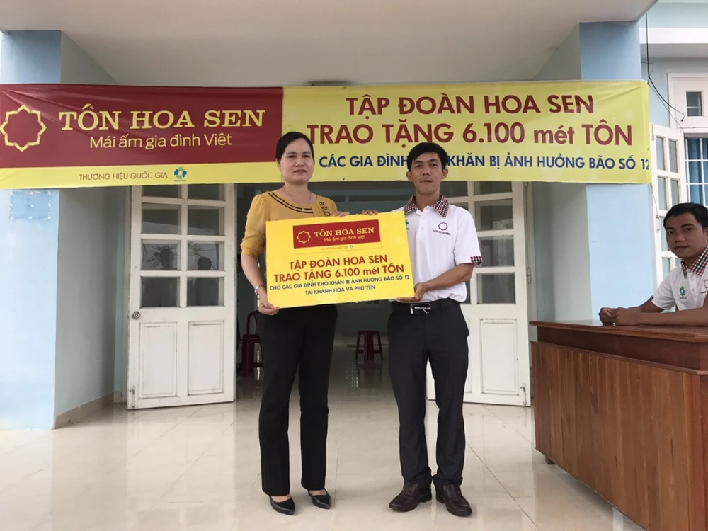 Tập đoàn Hoa Sen đã trao tặng 6.100 mét tôn cho các hộ dân có hoàn cảnh khó khăn bị bão cuốn bay mái nhà, không có điều kiện để sửa chữa.