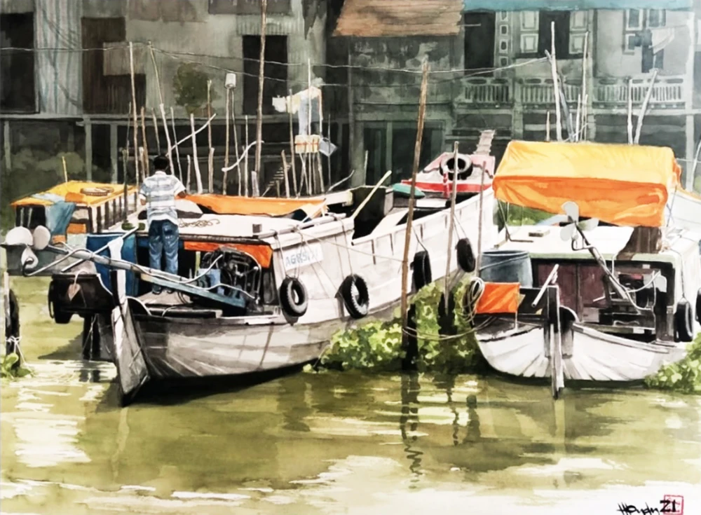 Hình ảnh miền Tây sông nước, cuộc sống thường nhật được anh đưa nhiều vào tranh của mình. |