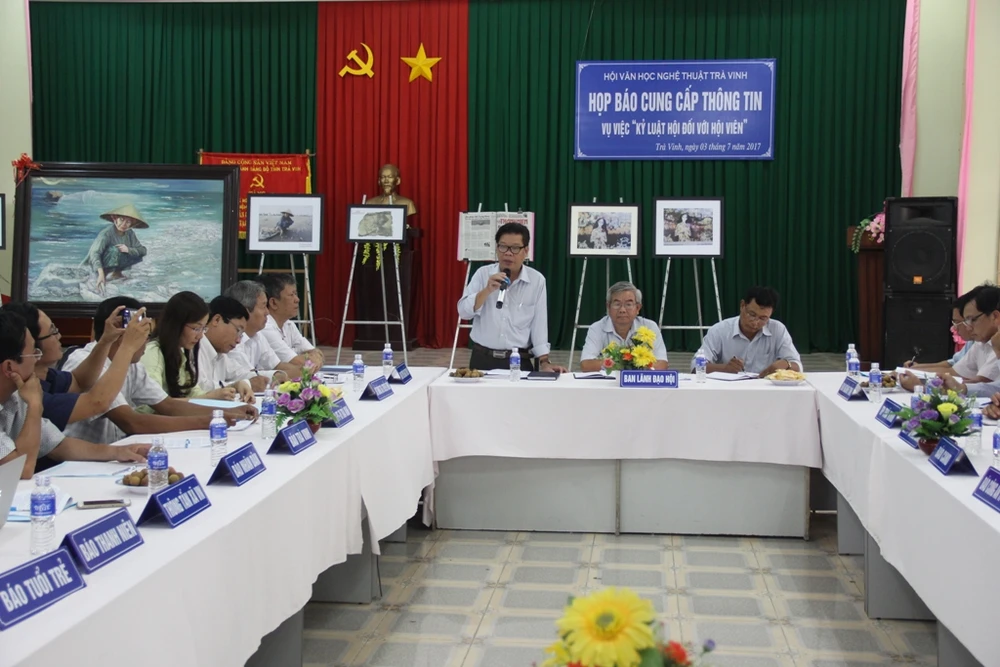 Liên quan đến sự việc họa sĩ Nguyễn Nhân bị kỷ luật và thu hồi bức tranh "Biển chết", chiều 3-7, Hội Văn học nghệ thuật tỉnh Trà Vinh (VHNT) tổ chức buổi họp báo với sự tham dự của các cơ quan báo đài, trung ương, địa phương.