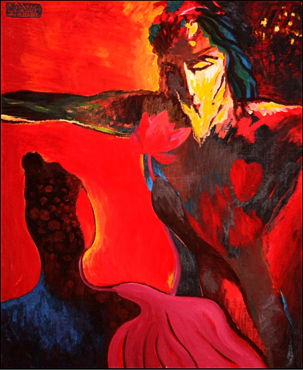 Tác phẩm "Đức Phật người bạn thân thiết của Jesus", acrylic trên vải vẽ. Ảnh: Nhân vật cung cấp