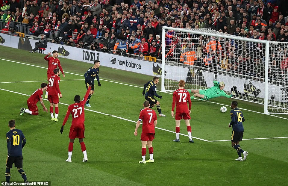 Nhưng sau khi tìm được bàn gỡ không lâu, Liverpool tiếp tục rơi vào thế bám đuổi. Tiền vệ cánh Willock bên phía Arsenal có pha đi bóng từ giữa sân rồi tung cú sút xa trước vòng cấm đưa bóng đi vào góc cao khung thành nâng tỉ số lên 5-4 cho “pháo thủ” ở phút 70.