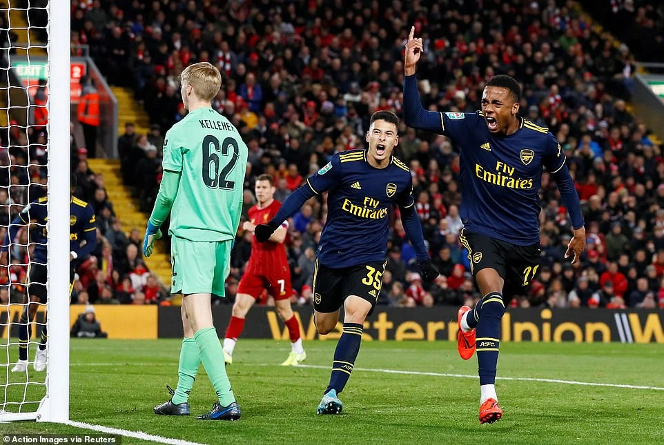 Sau hàng loạt những đợt tấn công nhanh, tiền vệ Bukayo Saka tung cú sút trong vòng cấm. Trong pha bóng này, thủ môn trẻ của Liverpool là Kelleher đẩy bóng ra đúng vị trí của tiền vệ Lucas Torreira để cầu thủ người Uruguay bên phía Arsenal băng vào đệm bóng cận thành. Arsenal tung ra đội hình gồm nhiều cầu thủ trụ cột, trong khi đó chủ nhà Liverpool chỉ sử dụng đội hình trẻ. Arsenal sớm lật ngược thế cờ để lội ngược dẫn 3-1 bằng “cú đúp” của tiền đạo Martinelli ở phút 26 và 36.
