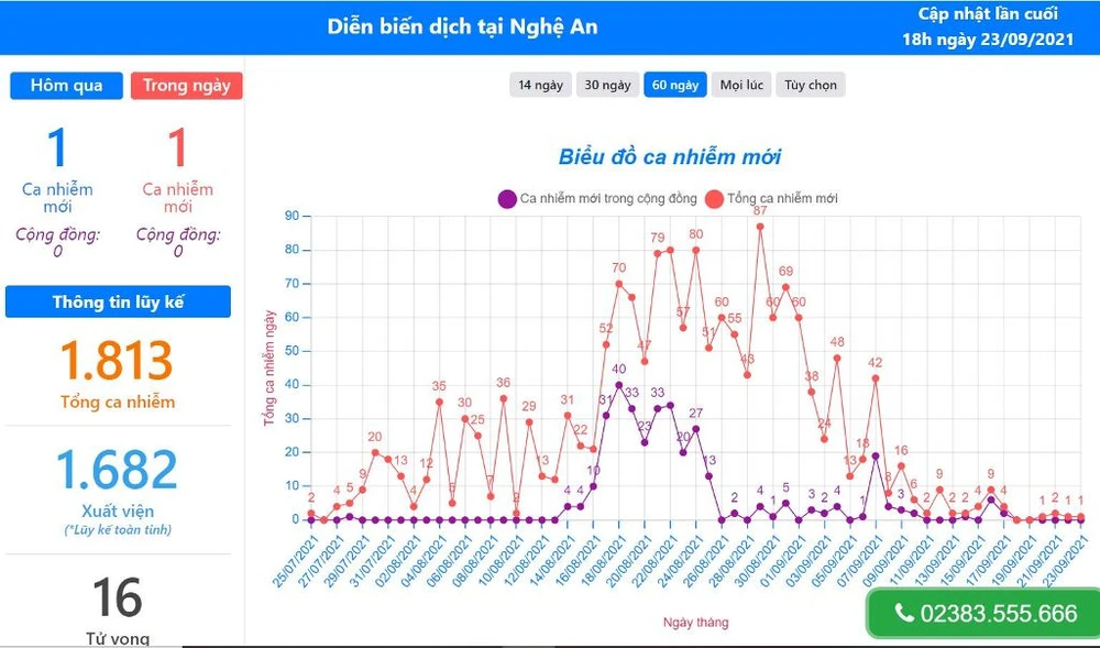 Diễn biến dịch COVID-19 tại Nghệ An. Ảnh: Cổng thông tin COVID-19 tỉnh Nghệ An