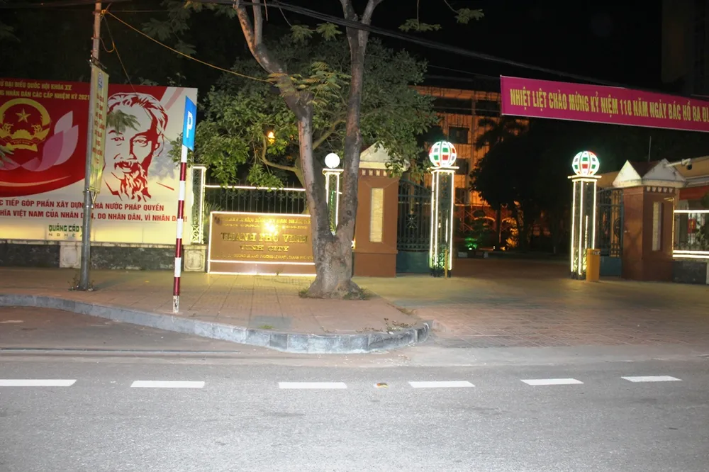 Cổng trụ sở UBND TP Vinh đêm 18-6.