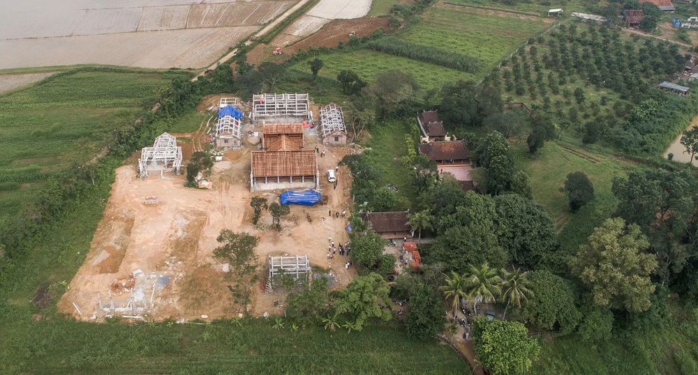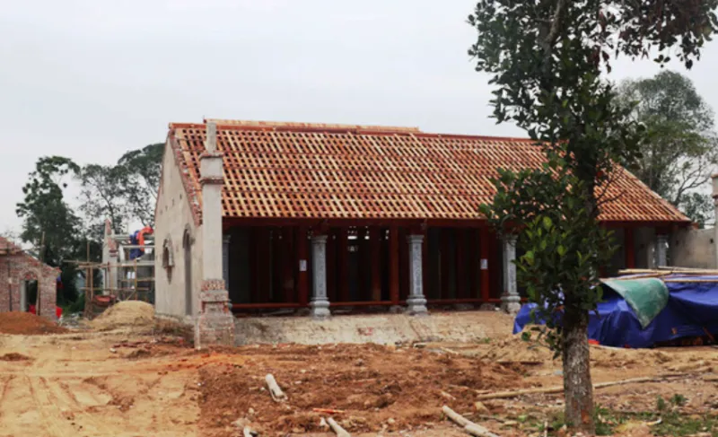 Ngôi nhà gỗ của chùa Linh Sâm đã dựng gần xong.