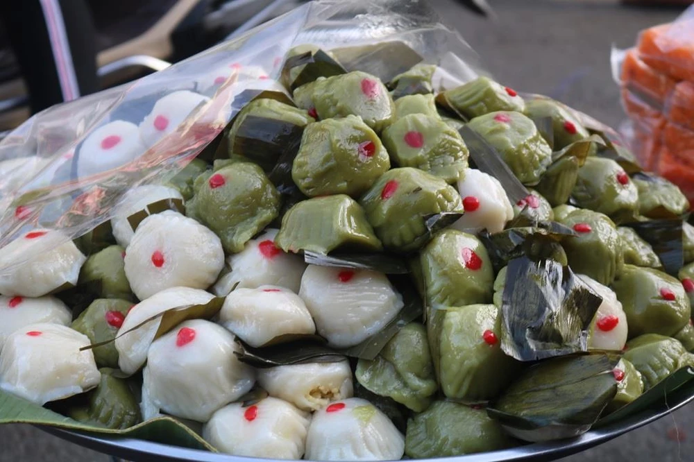 Chè trôi nước bán khá đắt hàng. Bên cạnh viên chè làm bằng bột nếp trắng, nhân đậu xanh ăn kèm với nước cốt dừa, người ta có bán cả bánh làm từ bột có trộn lá dứa và lá cẩm để phong phú hơn về màu sắc và hương vị.
