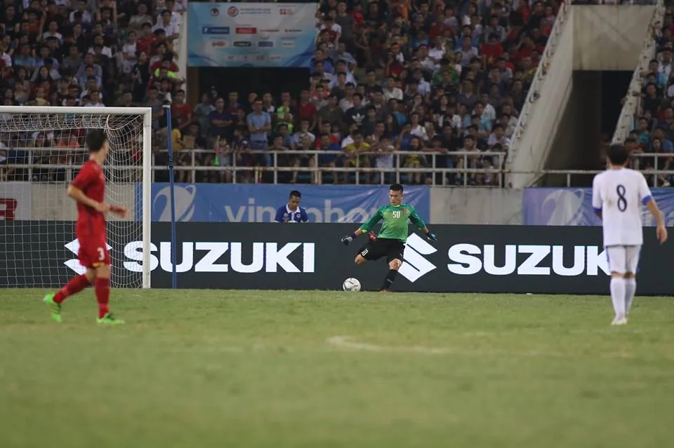 Phút 14, một cầu thủ Uzbekistan vừa dứt điểm hụt trong thế đối mặt với thủ thành Văn Hoàng.