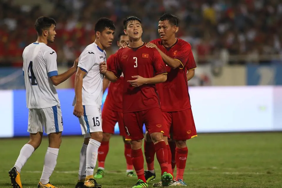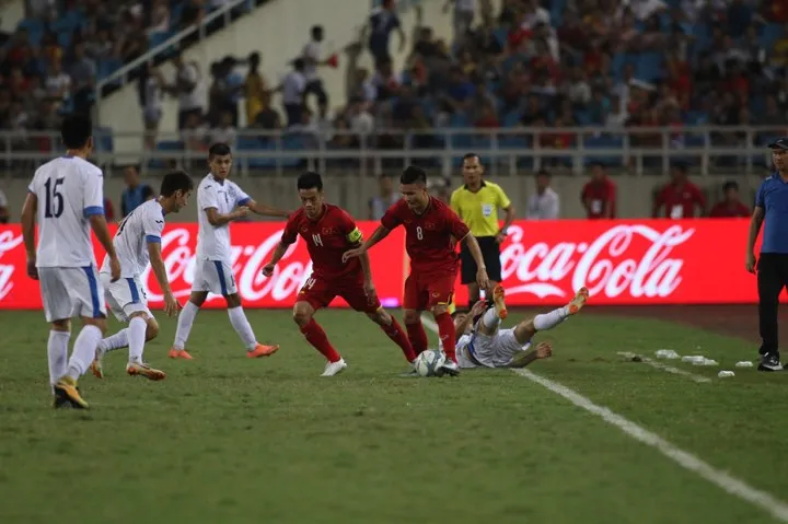 Trận đấu đã được bắt đầu. Ngay từ đầu trận đấu các cầu thủ Việt Nam đã tràn lên tấn công và áp sát khung thành Uzbekistan. Văn Quyết là đội trưởng của Việt Nam ở trận đấu này.