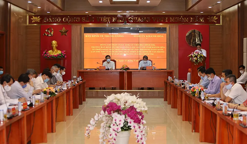 Trưởng ban Kinh tế Trung ương lưu ý tỉnh Khánh Hòa cần nghiên cứu bổ sung phát triển trung tâm logistics các hub kết nối giao thương, phát triển dịch vụ thương mại như kho bãi, dịch vụ cảng biển… để tận dụng vị trí địa lý thuận lợi, kết hợp phát triển thúc đẩy cảng trung chuyển. Ông Anh cũng yêu cầu tập trung cho phát triển hạ tầng giao thông, tăng cường khả năng kết nối các đường bộ, đường hàng không, đường biển.
