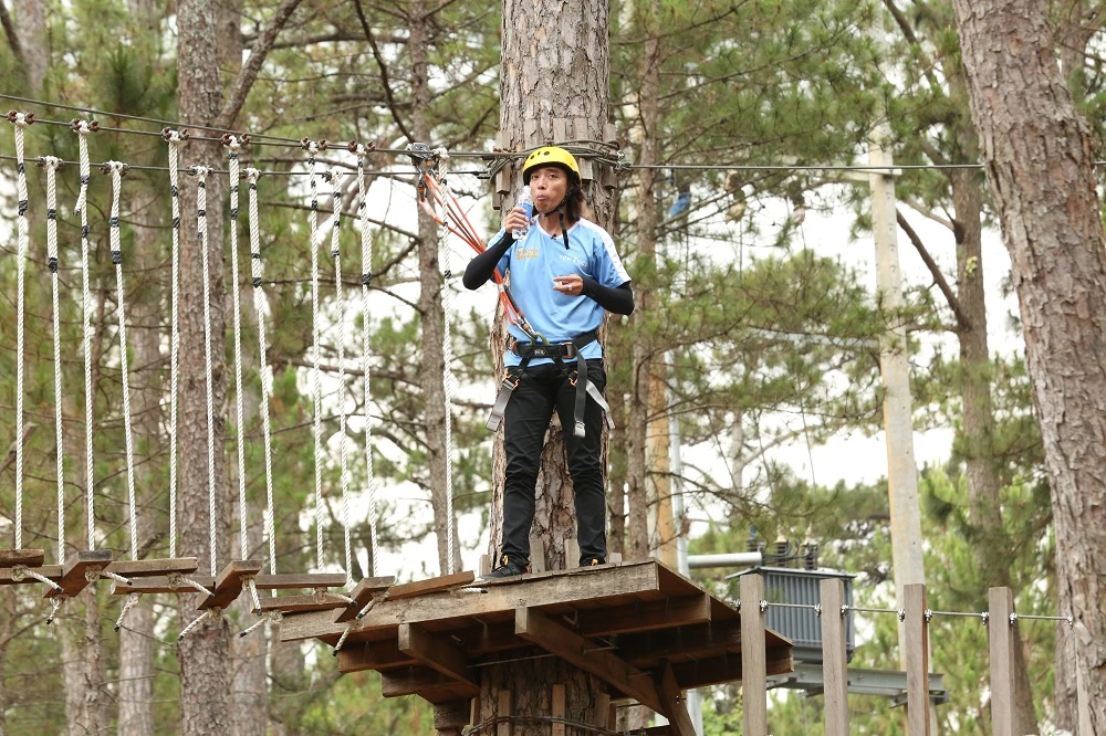 Hoàn thành thử thách bằng một màn đu dây trên không cực đẹp mắt, nhạc sĩ Hoài Phương mang về hơn 17 triệu đồng.