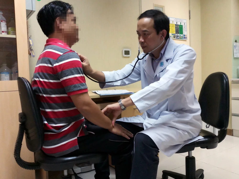 BS Trần Quang Nam đang thăm khám cho người bệnh. Ảnh: NP