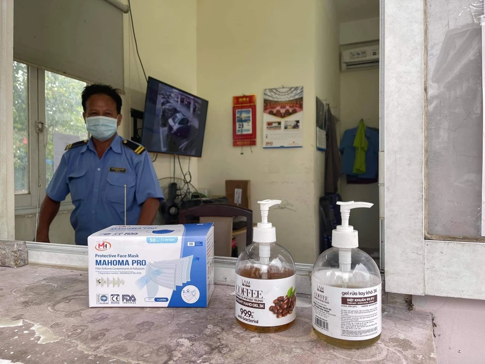 Bảo vệ TAND Cấp cao tại TP.HCM sẽ yêu cầu khai báo y tế, đo nhiệt độ, sát khuẩn tay đối với người đến liên hệ công tác. Ảnh: H.YẾN