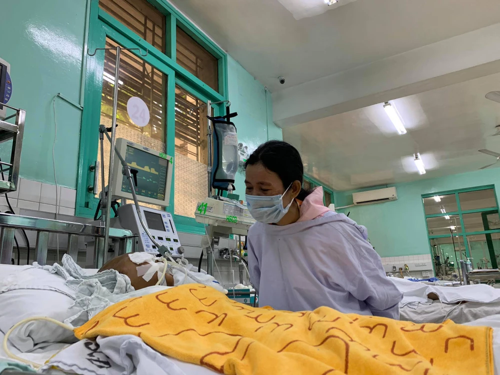 “Con tỉnh lại đi, mẹ sẽ mua xe máy cày, xe máy múc cho con”, chị Mơ Num Ka Ngô thủ thỉ trong nước mắt khi vào thăm con là bé MNCNK (4 tuổi, ngụ Ninh Thuận) bị người chồng của dì ruột có biểu hiện say rượu dùng kéo đâm vào mắt hiện đang nằm mê man trên giường bệnh tại Khoa Hồi sức tích cực và chống độc Bệnh viện (BV) Nhi đồng 2 (TP.HCM).