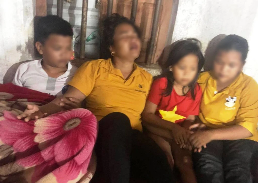 Vợ và ba con của anh Hạnh, khóc, buồn.