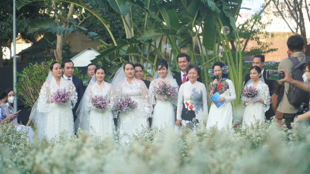 Các cặp đôi hân hoan khi có một lễ cưới ý nghĩa. Ảnh: Minh Tâm