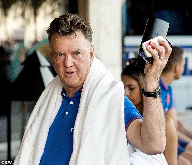 HLV trưởng Van Gaal (ngoài cùng bên trái) của Hà Lan - phù thủy của đêm 6-7 lịch sử khi quyết định thay thủ môn