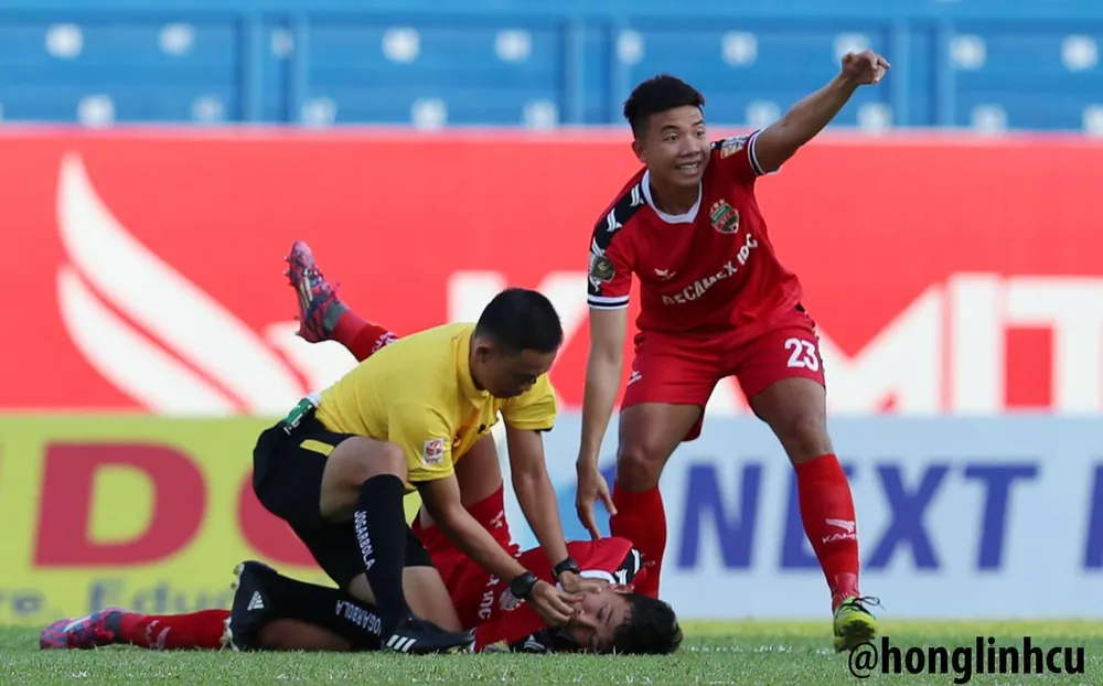 Sau khi ra hiệu gọi cấp cứu, trọng tài Lân trực tiếp cơ cứu