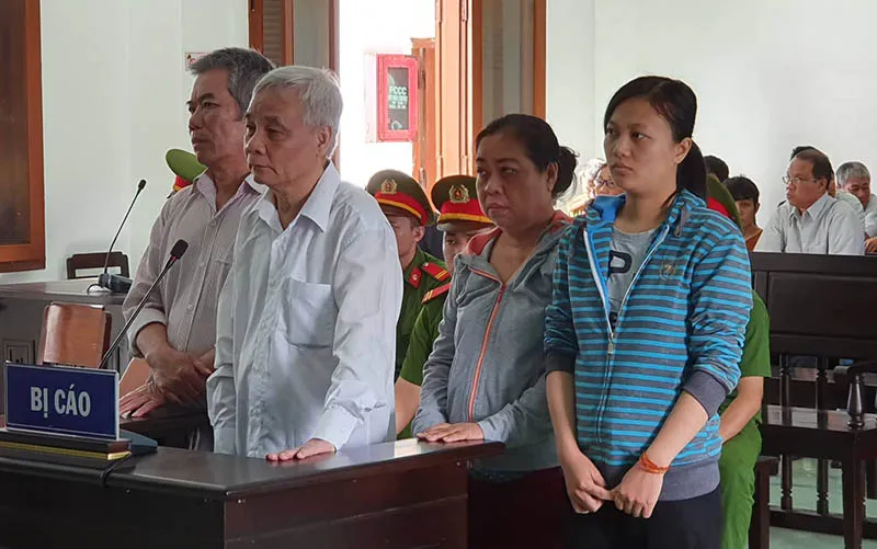 Bốn bị cáo là cựu cán bộ TAND tỉnh Phú Yên. Ảnh: TẤN LỘC