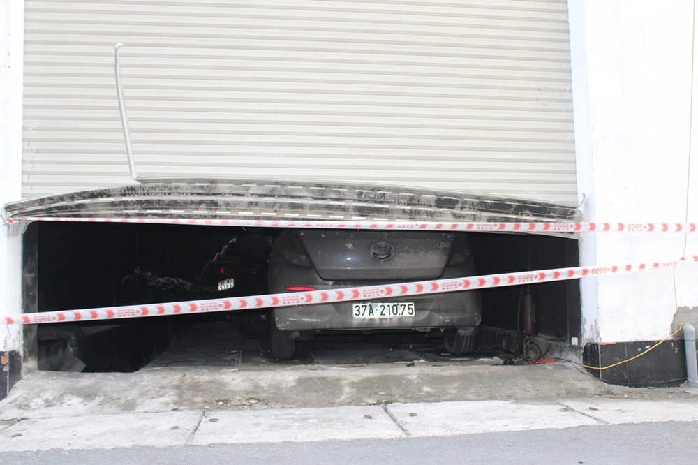 Ở gara căn nhà có chiếc ô tô và xe máy cháy còn để nguyên bên trong.