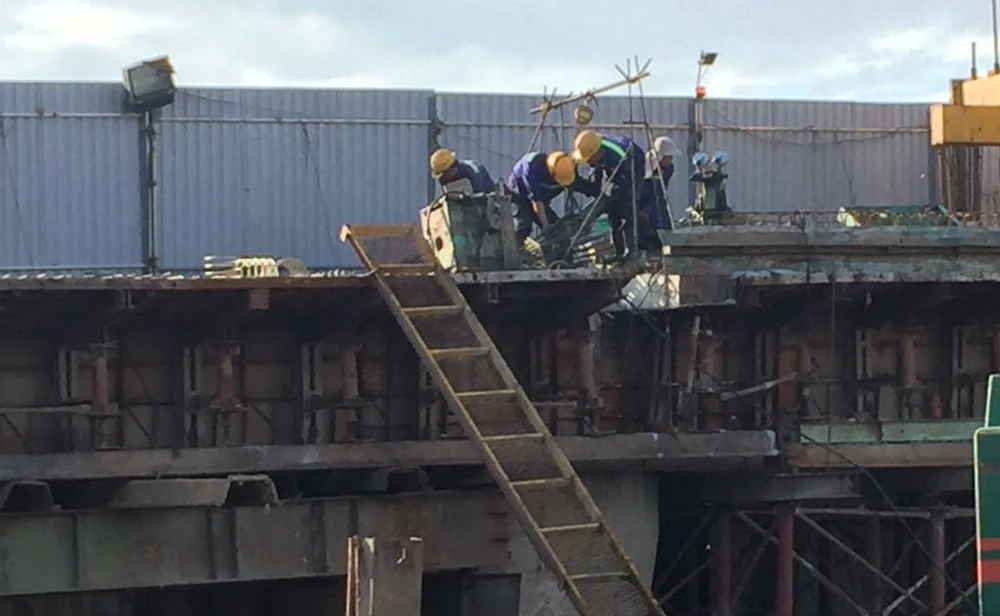 Phần dầm hộp đúc hẫng cân bằng vượt qua kênh Tàu Hủ cũng đã được đúc xong để chuẩn bị cho những ngày tới sẽ tiến hành nghi thức hợp long.
