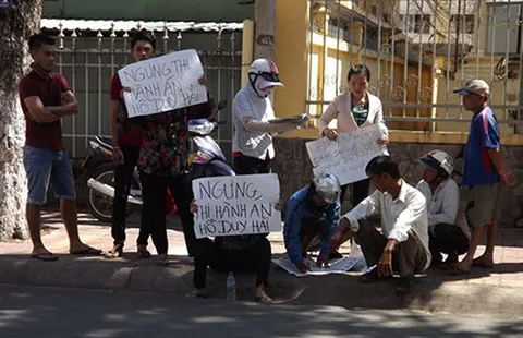 Trưa 4-12, trong khi bà Nguyễn Thị Loan - mẹ của tử tù Hồ Duy Hải đang trên đường ra sân bay Tân Sơn Nhất đi Hà Nội để cầu cứu cho con, khoảng 10 người thân của Hải đã tụ tập trước trụ sở TAND tỉnh Long An. Những người này giơ cao các tấm bìa carton với những hàng chữ viết bằng bút lông rằng “Kết án tử hình oan sai Hồ Duy Hải. Đại biểu Quốc hội hãy cứu người vô tội...”, “Ngừng thi hành án Hồ Duy Hải”... Họ liên tục la hét, yêu cầu tòa dừng ngay việc THA.