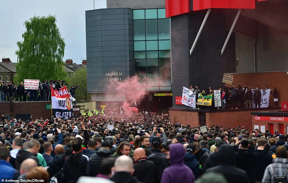 Đám đông CĐV đến sân và gào thét với nội dung “chúng tôi muốn Glazer rời khỏi MU”, thậm chí một số CĐV quá khích đã vào thẳng sân Old Trafford để chế nhạo ban quản lý và đội ngũ an ninh. Không dừng lại ở cuộc bạo loạn tại sân Old Trafford, mà tại khách sạn Lowry nơi các cầu thủ MU đóng quân cũng bị nhóm CĐV đến quấy rầy. Cụ thể những CĐV bên ngoài khách sạn Lowry đã hô vang khẩu hiệu “chúng tôi quyết định khi bạn thi đấu”.