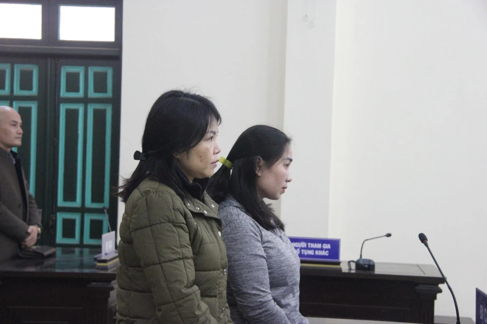 Bị cáo Nguyễn Thị Vững (trái) và Nguyễn Thị Vân tại tòa. Ảnh: HÀ PHƯỢNG