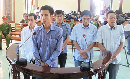 Tại phiên tòa sáng 24-6, năm bị cáo luôn tỏ ra rất lo lắng. Ảnh: T.LỘC