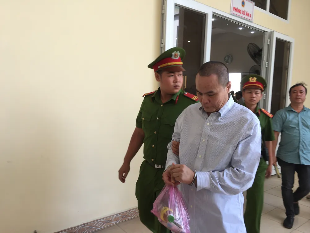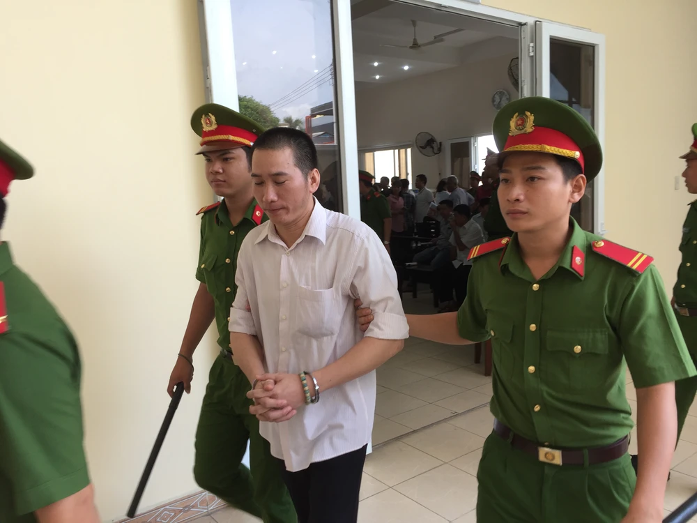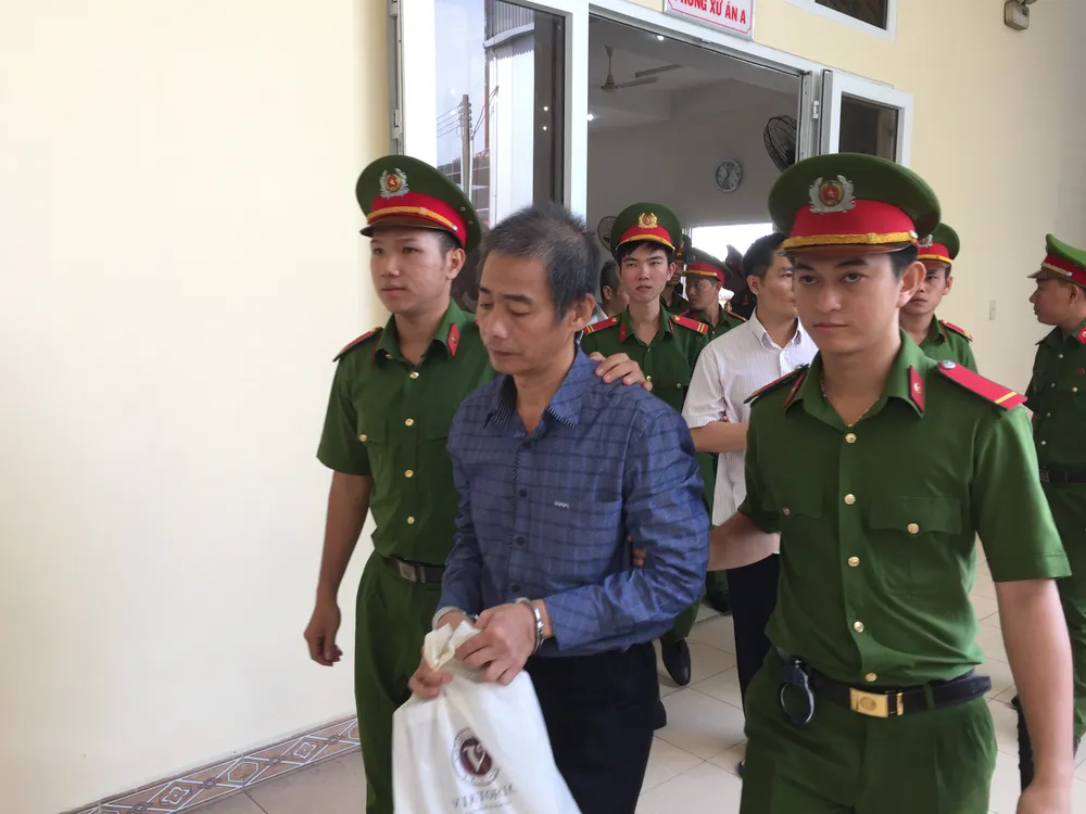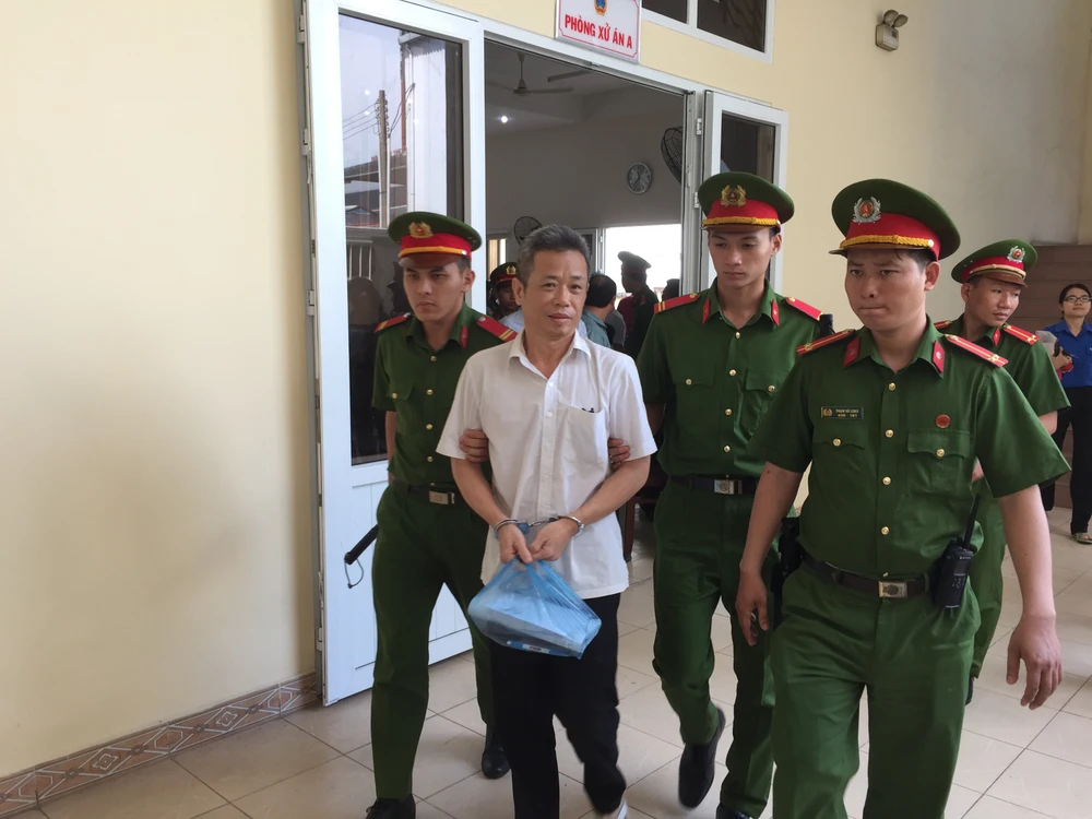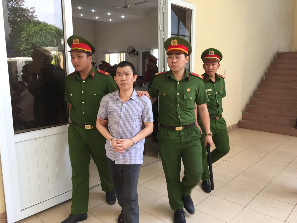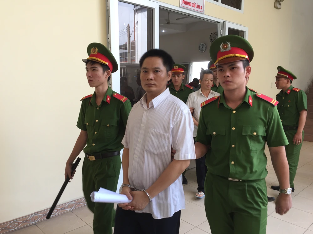 Các bị cáo được lực lượng công an áp giải rời khỏi phiên tòa. Ảnh: LÊ ÁNH