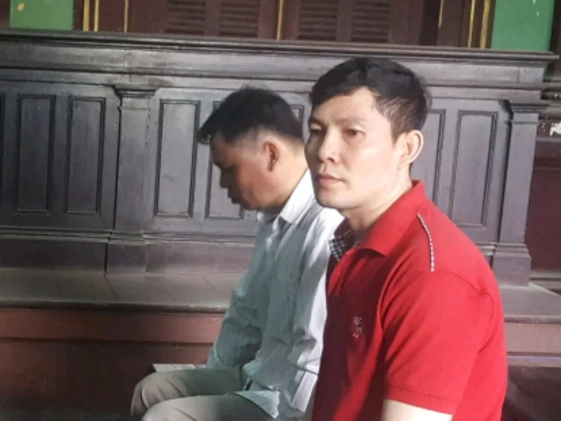 Hai bị cáo Nhơn, Phú (áo đỏ) tại tòa. ảnh: TV