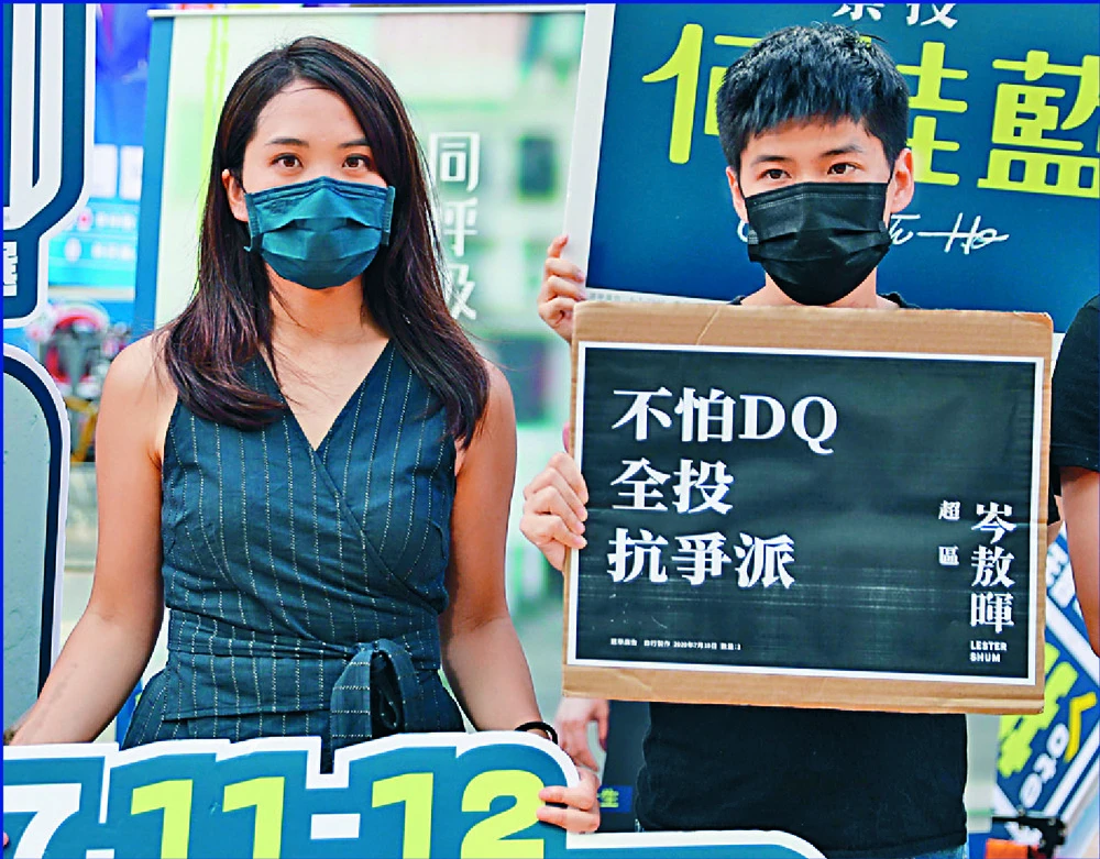 Gwyneth Ho (trái) và Lester Shum – hai nhân vật đối lập bị loại tên khỏi danh sách tranh cử vào hội đồng lập pháp. Ảnh: THE STANDARD