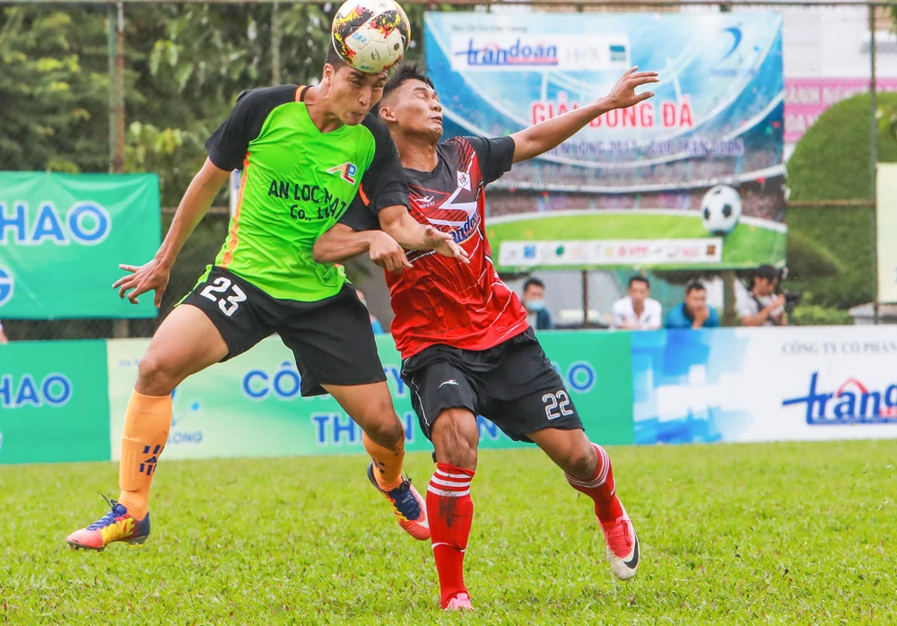 Trận bán kết 1 giữa An Lộc Phát (áo xanh) và Hưng Dũng FC