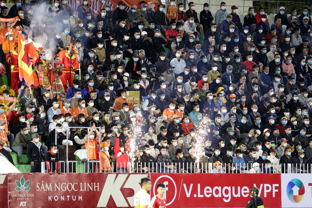 Người yêu bóng đá Bình Định kiên nhẫn chờ đợi khoảnh khắc ghi bàn của cầu thủ nhà sau gần cả năm vắng bóng V-League do dịch bệnh COVID-19 để bày tiệc pháo hoa ăn mừng.