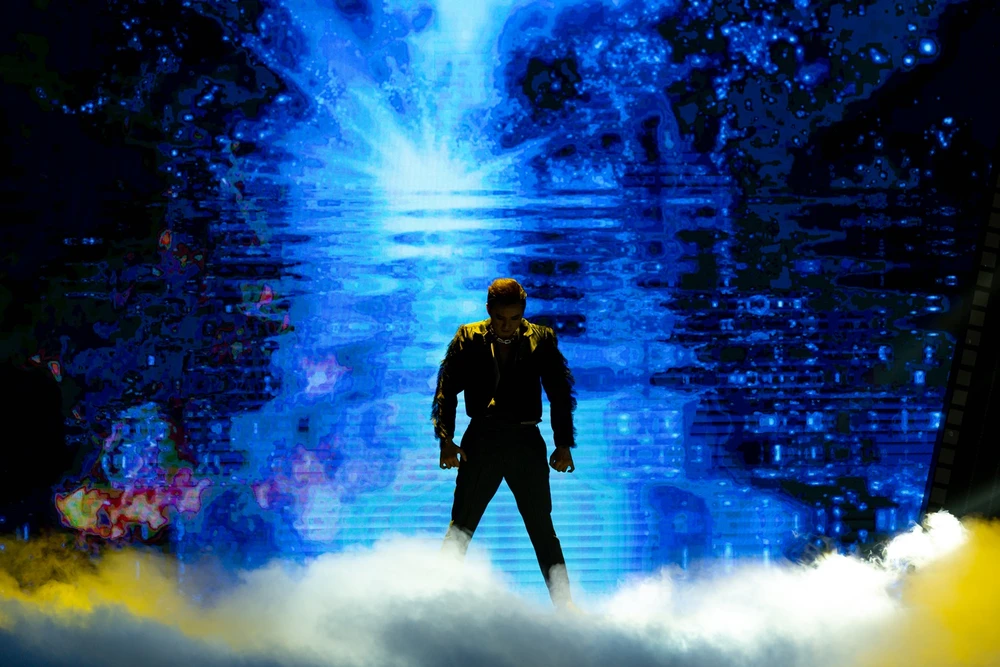 Ty Phong nhảy múa theo những diễn biến đang xảy ra trên màn hình led, kết hợp công nghệ hiện đại. Ảnh: JET