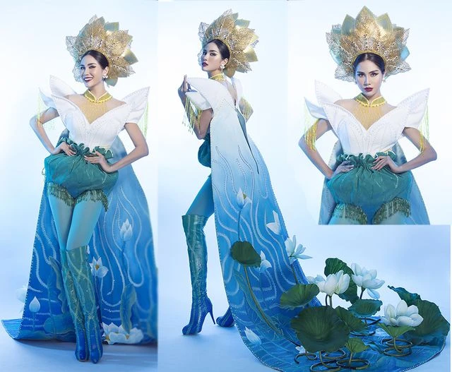 Hoàng Hạnh trong phần thi Trang phục dân tộc "Liên hoa chiến".