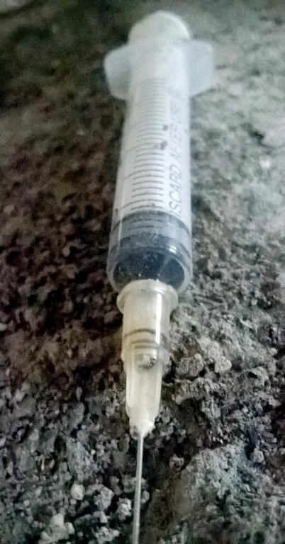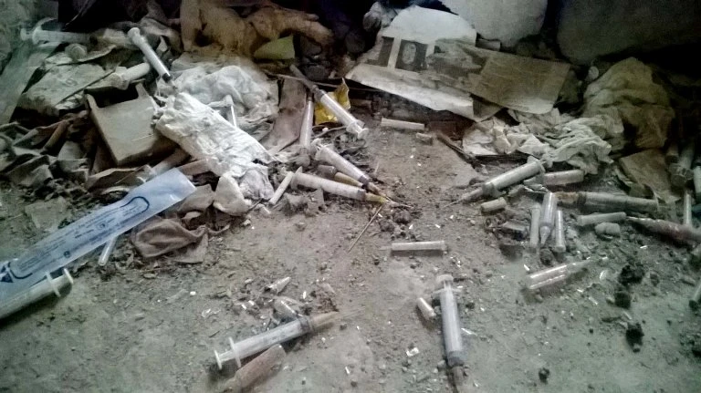 Theo quan sát, rác rưởi vứt đầy trên nền nhà, kèm theo đó là những lọ nước cất nhỏ, bên cạnh các ống kim tiêm không được đậy nắp. Nhiều kim tiêm vẫn còn mới, được các con nghiện bỏ lại tại chỗ khiến không khỏi rùng mình vì mức độ nguy hiểm của chúng, chỉ cần sơ xảy một chút thì rất dễ dàng đá phải những mũi kim tiêm còn nguyên máu này.
