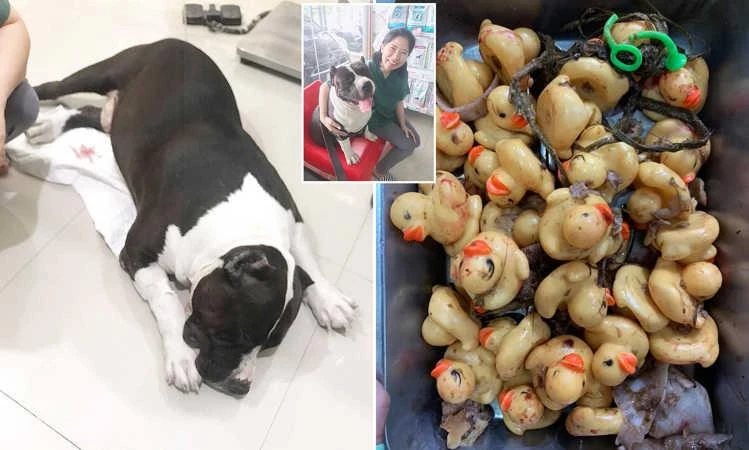 Một bác sĩ thú y ở TP Pattaya, Thái Lan gần đây đã chia sẻ trường hợp cảnh báo về một con chó bulgie giống Mỹ đã nuốt không dưới 38 con vịt cao su và phải phẫu thuật để moi chúng ra, trang Oddity Central đưa tin.