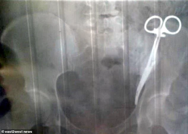 Ban đầu, bác sĩ chụp X-quang nói rằng bà đang giấu một chiếc kéo trong túi áo, nhưng sau đó họ hoảng hốt phát hiện ra nó thực sự nằm trong bụng bà.