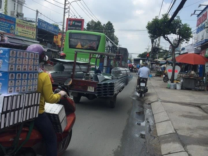 "Hung thần" chở tôn hiện rất phổ biến ở nhiều tuyến đường ở TP.HCM. Đây là vị "hung thần" dễ gây sát thương cho người đi đường nhất. Ảnh: V.NGUYÊN