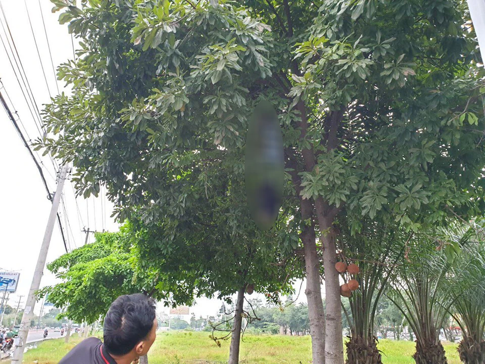 Thông tin ban đầu, vào chiều cùng ngày, người dân đi đường phát hiện một người đàn ông khoảng 40 tuổi,đang lơ lửng trên cây ngay sát quốc lộ 13, trước cửa siêu thị Lotte Mart Bình Dương.
