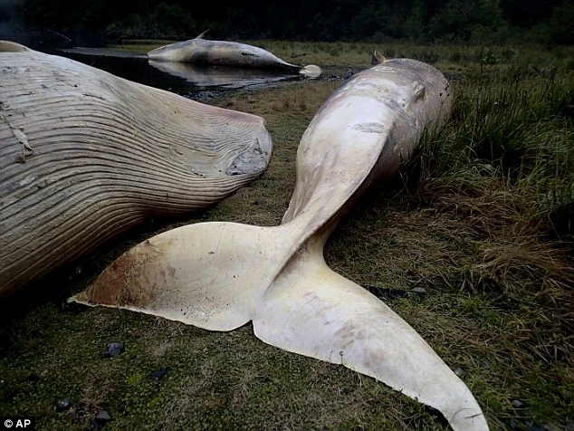 Một nhóm các nhà khoa học tìm thấy ít nhất 20 xác cá voi sei ở vịnh Penas dọc bờ biển Chile