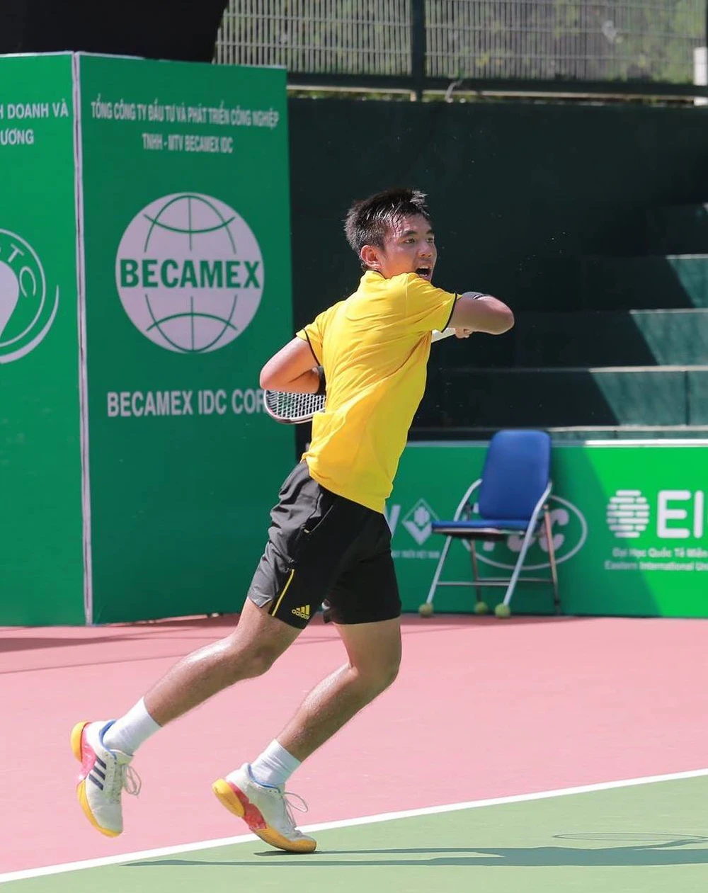 Tay vợt Lý Hoàng Nam giành trận thắng thứ hai tại Ấn Độ. Ảnh: CMQ