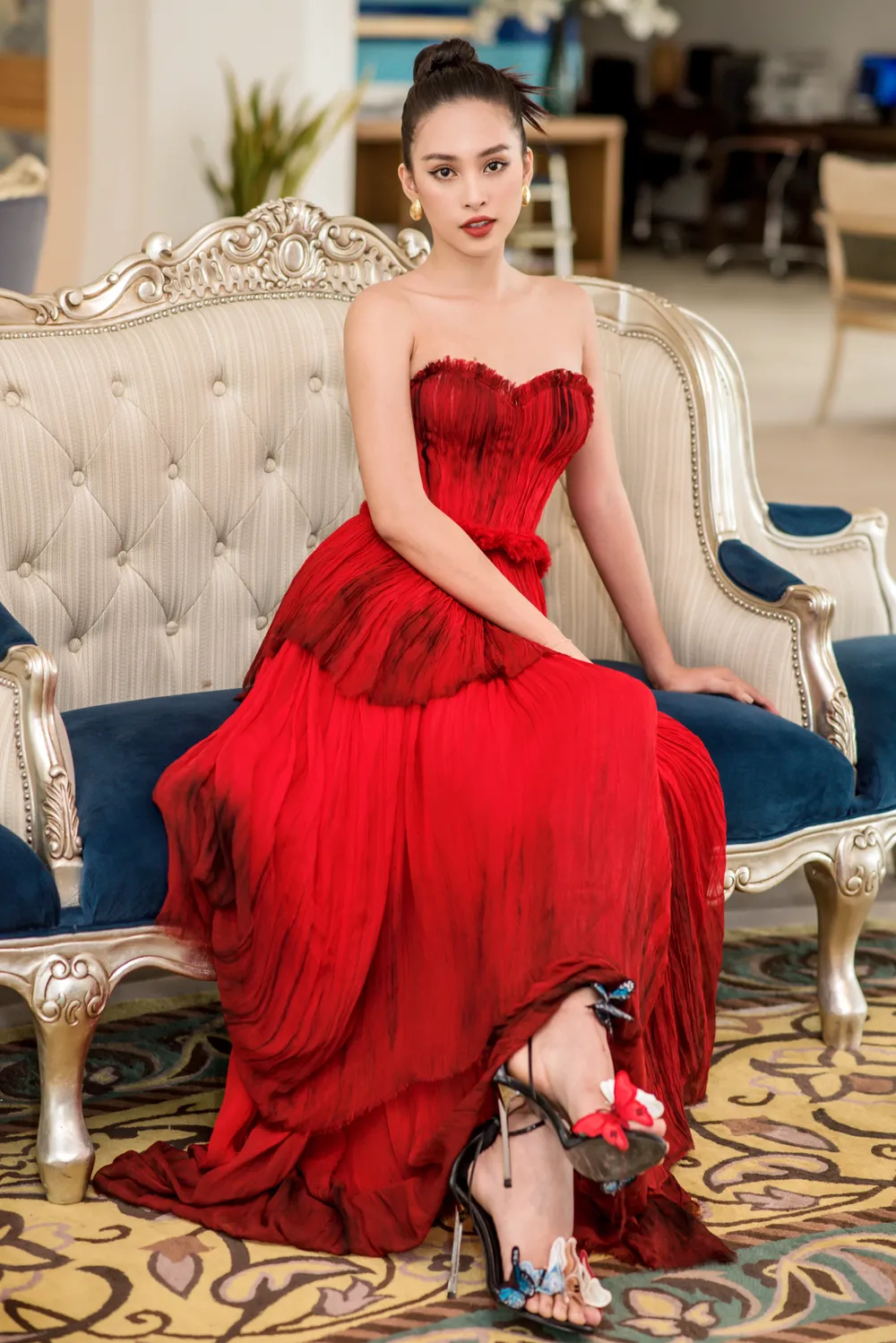 Đều từng chinh chiến các đấu trường nhan sắc lớn nhất hành tinh, hai nàng hậu xuất hiện chặt chém với trang phục màu đỏ một chín một mười.