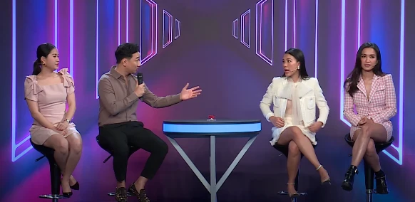 Đáp lại sự khiêm tốn của đàn chị, Hoàng Oanh không ngần ngại gửi đến Lâm Vỹ Dạ lời khen có cánh: “Nhưng mà sự duyên dáng thì hai em không bằng chị đâu”. Trái với sự ngại ngùng của Lâm Vỹ Dạ, MC Thành Trung chào đón hai khách mời bằng một món quà bí mật.