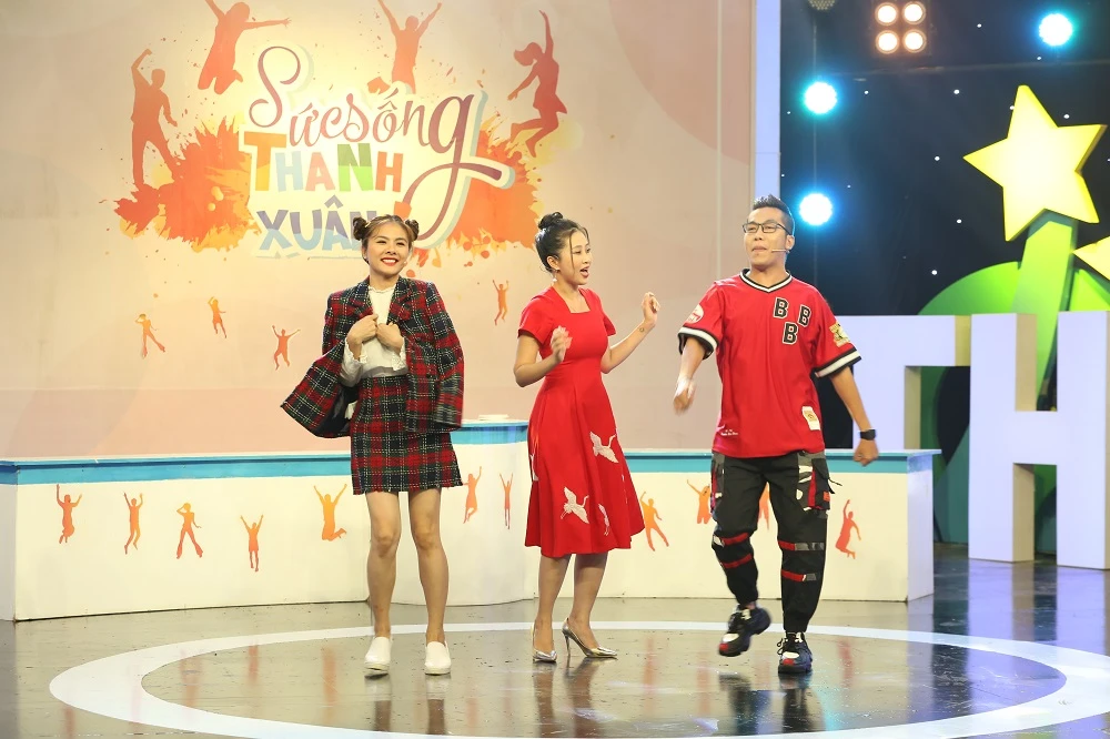 Vân Trang, Liêu Hà Trinh và Hoàng Rapper trong chương trình Sức sống thanh xuân. Ảnh: CTCC